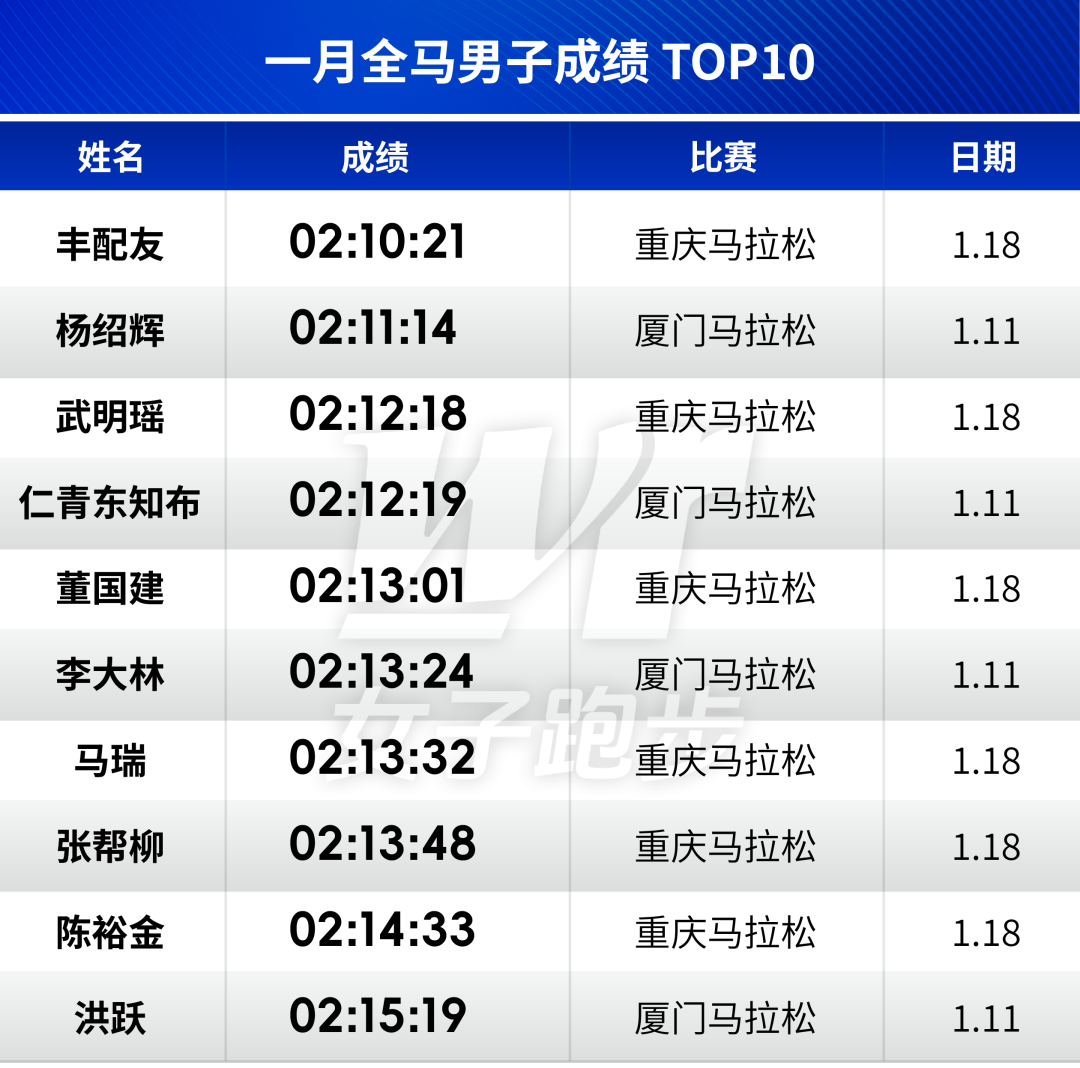 过往每年的1月,白金标厦马成为年度大型赛事的独苗。如今,随着金标赛事重马的提档,让今年1月,出现了厦马和重马的背靠背之战。而这个月,全马男女TOP10的成绩也皆出自重庆和厦门。