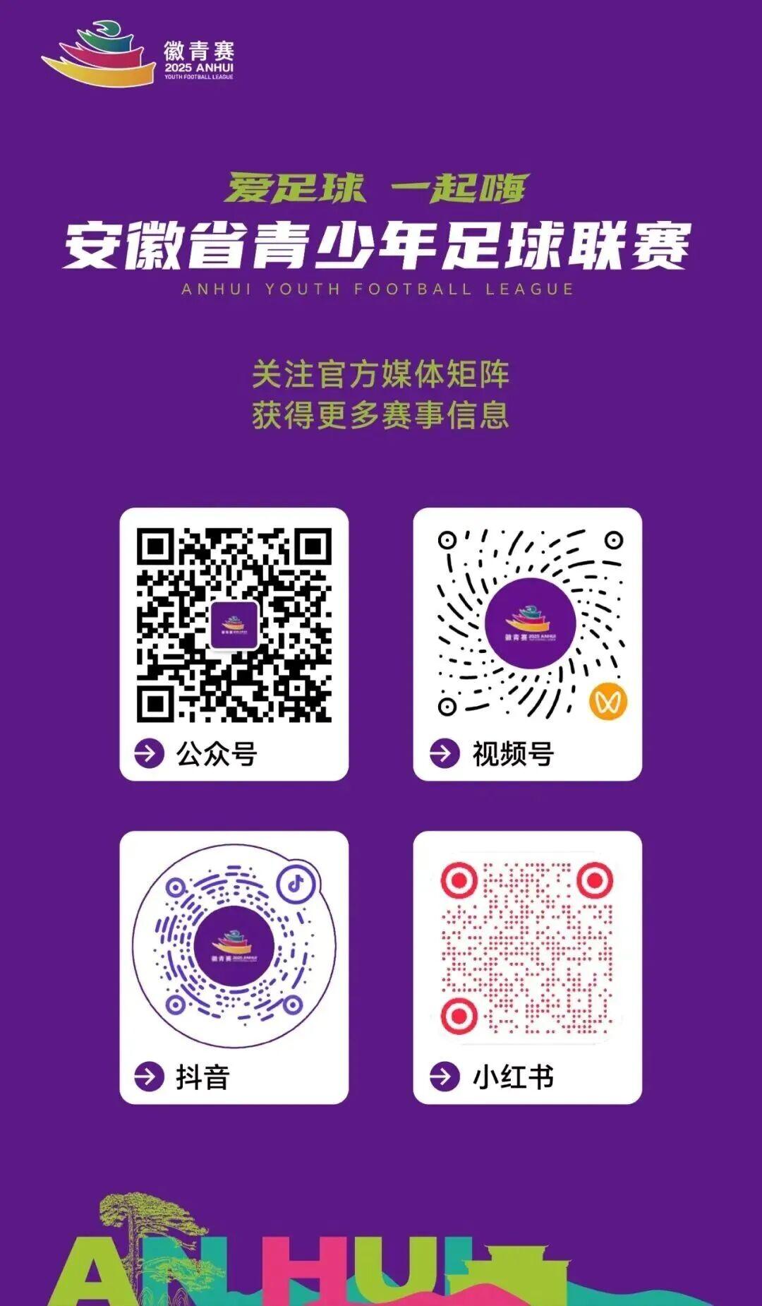 无法到达现场的球迷,可关注徽青赛官方媒体矩阵(公众号、视频号、抖音、小红书),后续会陆续发布直播链接,让您同步感受赛事激情!