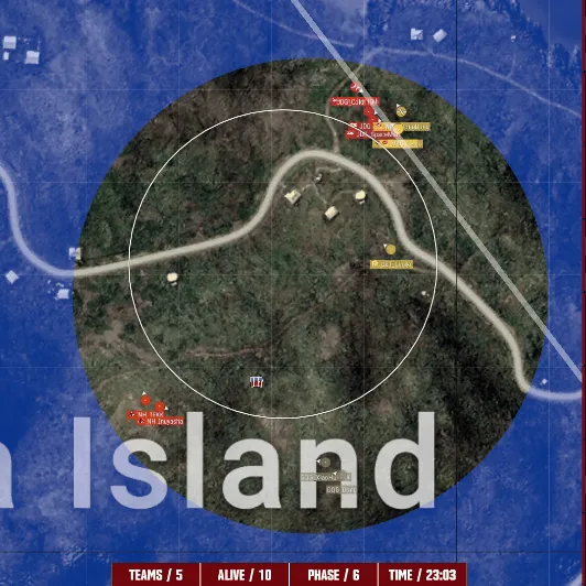 决赛圈四支队伍,JDG成为唯一满编队伍,JDG选择开车拉到山上,将GQG两人淘汰,JDG也倒地两人,NH前来劝架,将JDG最后两人淘汰,最终剩余NH二打一BBT独狼,NH最终成功吃鸡。